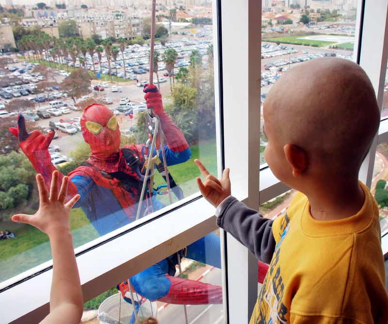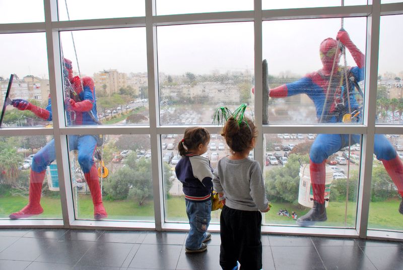 היו אלה ניב קרבי מ”הגולשים” ואופיר פשרל מ”קרן שמש”, מנקי החלונות שהתחפשו לספיידרמנים, וביצעו בהתנדבות את הפעילות המרגשת.