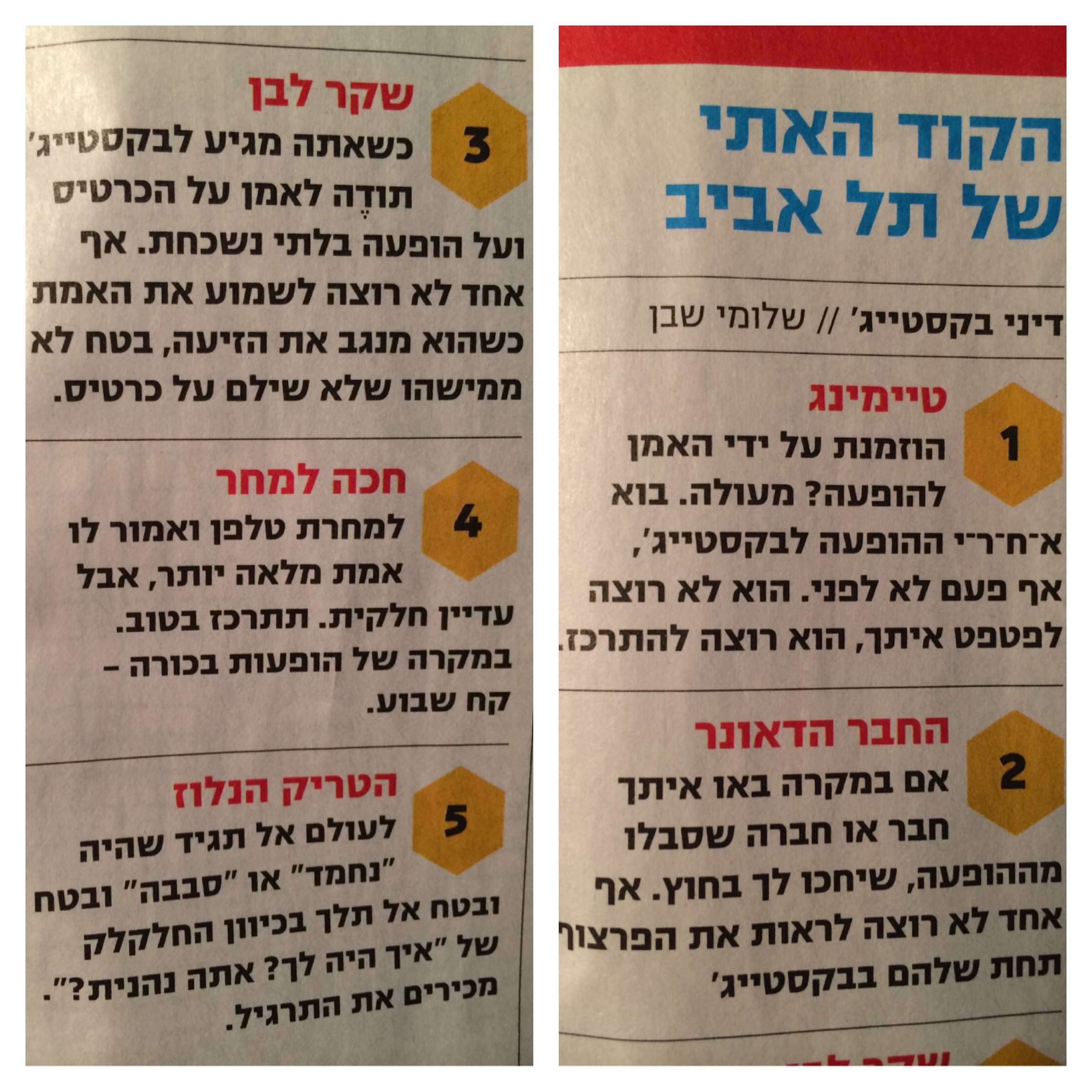 “אהבת באמת?” שאל שלומי “או שאת מיישמת את המדור דיני תגובות למוזיקאים שכתבתי בגליון שאהבת שבו אני מדריך איך צריך לענות למוזיקאי ששואל אותך איך היה??”..