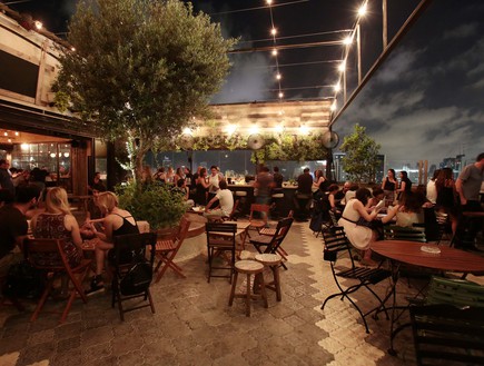 בשקט בשקט, מתחת לרדאר של ביצת הבילויים המקומית, נפתח הבר החדש סורה מארה, כל כך בשקט, שכולם כבר היו בו ומדברים עליו. היתרון הבולט שלו הוא הלוקיישן: על גג של בניין משרדים בן 10 קומות במרכז ת”א, עם 3 כיווני נוף. המיקום והעיצוב הזכירו לי את השורדיטשהאוס בלונדון, שזה אומר שמכוונים שם גבוה, האוכל קצת גימיקי עם הפיצה שמוגשת בתוך מגש טייק אווי, והמוזיקה מיינסטרימית להחריד, אבל הוויב הנכון, של המקום הכי שווה בעיר, עושים את העבודה. סורה מארה. סעדיה גאון 24, תל אביב.(צילום עודד קרני)