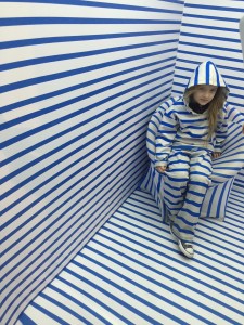 זוהי התערוכה שמוצגת באגף הילדים, ומותאמת בדיוק בשבילם. הגיבור של התערוכה, מר קו, יוצא לטיול בתוך העולם-אולם, ובדרכו משתנה מקו דו–ממדי הצמוד לקיר לקו תלת–ממדי המשתולל בחלל. בדרך נחשפים הצופים הצעירים ל-25 יצירות אמנות מפורסמות העשויות מקווים ולפעילויות מגוונות, כמו ציורי מערות בעזרת אייפד, רישום בחלל בעזרת קווים של אור בהשראת פבלו פיקאסו, משחקי סאונד וקו, צפייה בסרטיו של “מר קו” האגדי ועוד. דנה התלהבה במיוחד מצילום קווי האור ומציורי המערות, אבל הכי מהחדר המפוספס בכחול לבן. חצי שעה שלמה של פעילויות ואינטראקציות חלפו ביעף, ואם לא היה לנו עוד המון מה להספיק, היינו נשארות יותר.