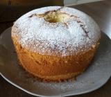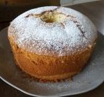 6. מוציאים את העוגה ומיד הופכים אותה על בקבוק (או על שלושת רגליה) וכך משאירים אותה להתקרר. כשהעוגה קרה הופכים בחזרה, מחלצים בסכין ומגישים עם אבקת סוכר.