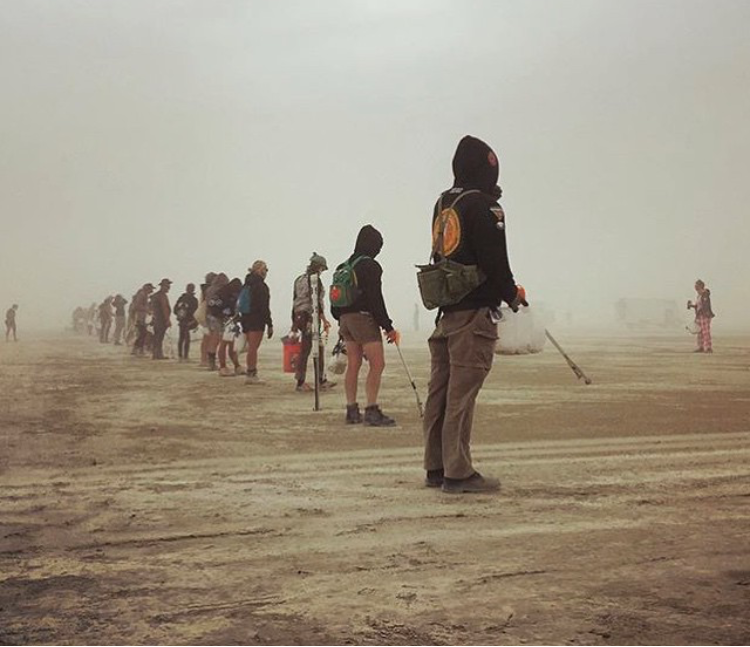 לא להשאיר עקבות – הקהילה מכבדת את הסביבה ומחויבת שלא להשאיר עקבות לפעילות. זה אומר שבסוף השבוע אתה צריך להשאיר את המקום כמו שקיבלת אותו כולל לקחת איתך הביתה את כל הזבל שייצרת. חודש אחרי שהפסטיבל מסתיים צוותים של מתנדבים עוברים ס”מ ס”מ על פני האדמה ומוודאים שהשממה חזרה לקדמותה.