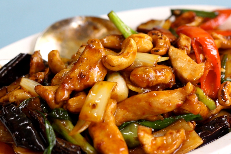 5. מוסיפים את אגוזי הקשיו לעוד דקה או שתיים ואת הצ’ילי המיובש ומגישים לצד אורז לבן.
