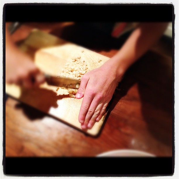 בערך באמצע הבישול מיכל אמרה להדליק את הטלוויזיה שזה כאילו חיים כהן אומר אומר “חצי שעה עברה”. ואז התחלנו לבשל באמת, וזה ממש לא קל כמו שזה נשמע כי צריך לחתוך שום ופלפל וגם לערבב את הפסטה וגם לבדוק את השעון וכל זה באותו זמן. נראה לי ששנים של משחקי מלחמה בכל זאת הועילו כי החיתוך שלי עם הסכין היה ממש מקצועי.