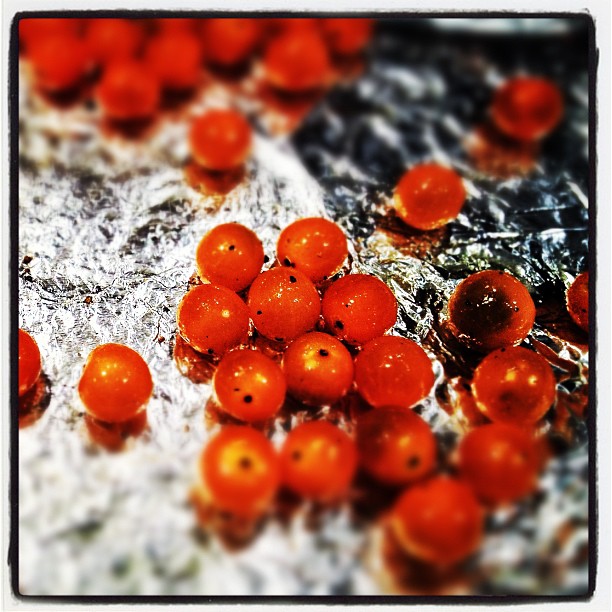 1. שמים בתבנית צלייה את העגבניות הצהובות ומערבבים היטב בשמן זית מלח ופלפל.