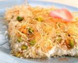 מוסיפים את מי הוורדים והלימון ושופכים חם על הקדאיף החם.