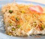 מפזרים מעל את גבינת הריקוטה באופן שווה ומעליה את שאר שערות הקדאיף. שוב מהדקים.