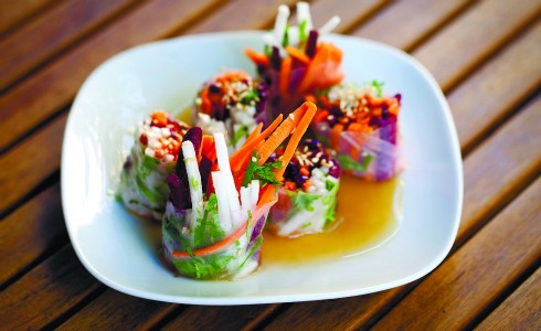 או את הרול ירקות שורש בדף אורז, ויניגרט שומשום וצ’ילי.. כנ”ל..